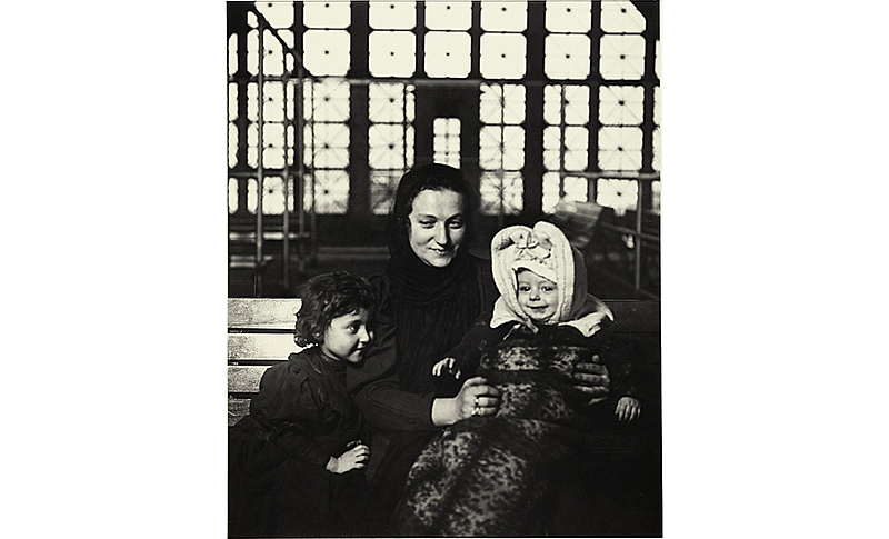 Lewis Wickes Hine, American, 1874-1940. The Madonna of Ellis Island (Russian family), ca. 1905. Gelatin silver print, 20 x 16 in. (50.8 x 40.6 cm).